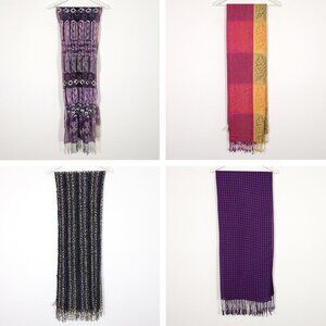 Purple Mixed Print Knit Fringe Bohemian Scarf