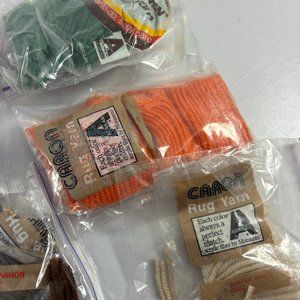 Mixed Rug Yarn Lot Precut Latch Hook Caron Red Heart Orange Green White Black. Some are opened and partially used.