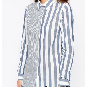 Mixed stripe button down shirt purchased from ASOS. Baggy fit, split sides. Brand : New Look. Worn once!