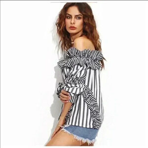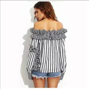 Love this black and white stripped ruffle, off the shoulder top, but time to rotate for something else! Excellent condition.
