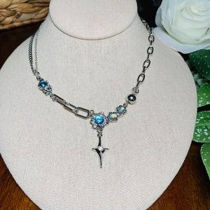 Mixed Style Moonstone, Stainless Steel, Paperclip, Chain Link Cross Pendant Necklace. 18”-21”