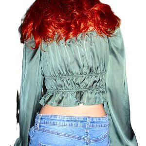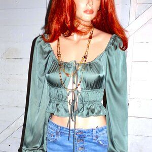 Mixed Threads Hunter Green Peasant Crop Blouse S