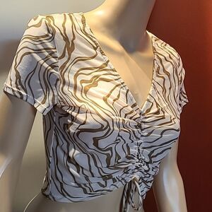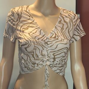 Light pink almost flesh colored mesh crop top featuring short sleeves a pull string front for the length you desire, great for a night out. Bought from Ross brand new. Mixed threads size large.