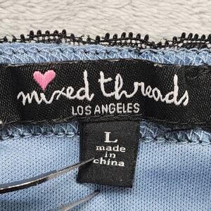 Mixed Threads Top Womens L Blue Black Floral Velvet Mesh Ruched Crop Cami Tank Adjustable Straps Coquette Girly Whimsycore Fairy Balletcore Y2K