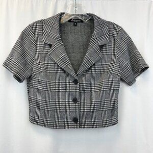 Mixed Threads Womens Gray Black Houndstooth Knitted Cropped Blazer Size Medium
