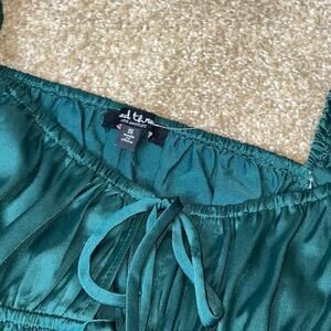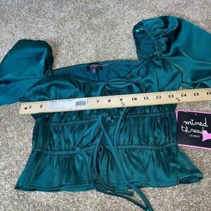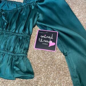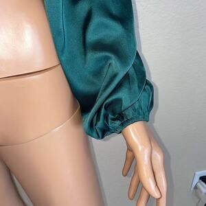 Mixed Threads blouse top Long Sleeve Textured Satin Emarald green puff sleeve SM