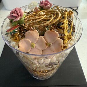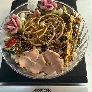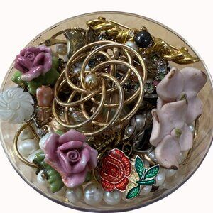 Mixed Vintage Jewelry Lot W/ Enamel Roses Pearl Beads & Gold Tone, Retro, 90's