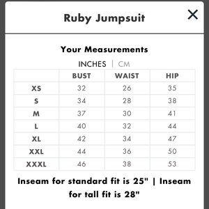 Jumpsuit is new with tags. I am including the description from the website below. Size chart is shown in the above pictures. Feel free to ask any questions! ♥️