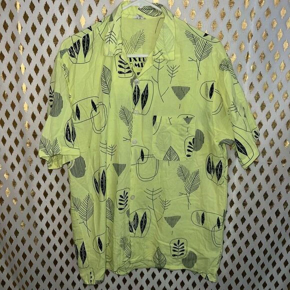 Mixed company by Serkes Bright neon yellow fluorescent button up short sleeve shirt size S