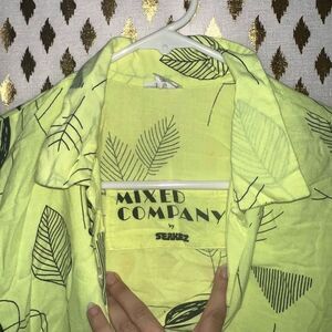 Mixed company by Serkes Bright neon yellow fluorescent button up short sleeve sh