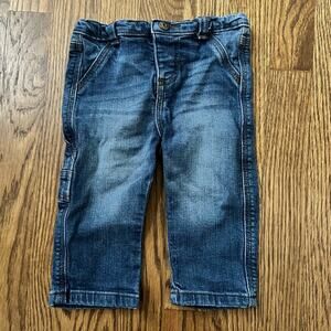 Medium wash denim cargo jeans. Wrangler size 6-9 months.