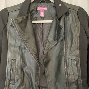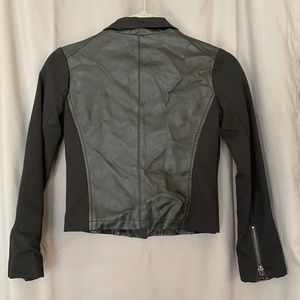 like new. only signs of wear are inside above the tag//not visible when wearing. zips all the way up to top and at cuffs. vegan leather