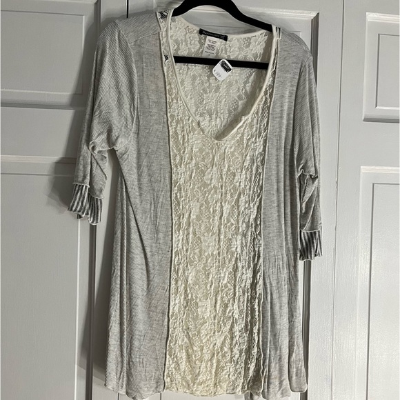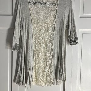 This top is a mixture of lace and yarn and detail can be worn with a skirt, dress jeans or leggings