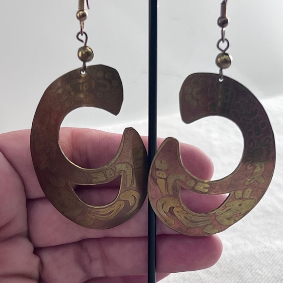Brass and Copper colored earrings. Has a vintage Boho vibe Measures 2.25" not including fish hooks unbranded