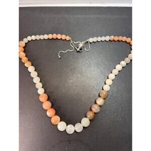 Mixed moonstone and sunstone beads in graduated sizes from about 6-9mm. Necklace measures from 17-23 inches in length depending on slide bolo Adjustor. 925 sterling silver . Genuine and authentic. Sterling silver is most likely plated with rhodium to slow down tarnish. Magnetic clasp