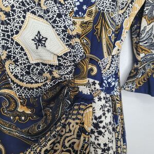 Mixed print faux wrap v neck flattering textured ruffle sleeve dress size 8