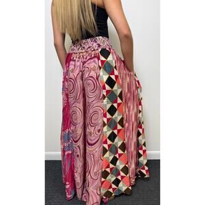 Mixed-print wide-leg trousers- One Size 100% Silk