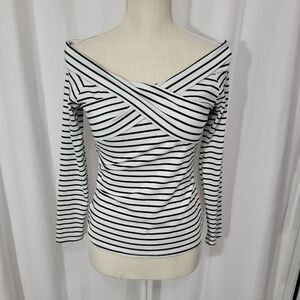 Classy Sexy without being overtly sexy. This chic striped off the shoulder blouse doesn't slip or bunch, Stays off the shoulder