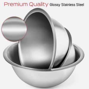 Stainless Steel Mixing Bowl Set: Crafted with commercial-grade stainless steel that is durable, rustproof, odor-resistant, and unbreakable, our mixing bowl set features an elegant, brushed finish that won’t show fingerprints or stains.