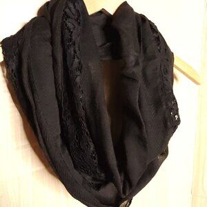 Mixit women’s black lightweight infinity scarf with lace detail. Good condition.