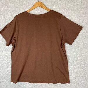 Mixit Brown Short Sleeve TShirt Blue Design with Rhinestone Details Size 1X 100% Cotton