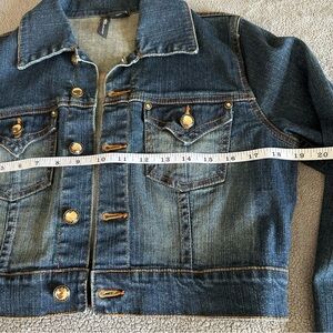 Mixit Cropped Dark Blue Faded Denim Jacket with Jewel Buttons