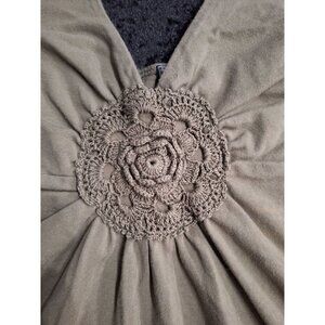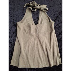 Mixit Olive Green Stretch Halter Top L With Crochet Accent Adjustable Tie Neck C