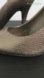 4” heels. Inside of shoe worn but outside of shoe is in very nice condition. Soles do not appear worn. A small pinkish dot on the front of right heel (see 2nd picture). Dramatically discounted from original price because of wear on inside of heel.