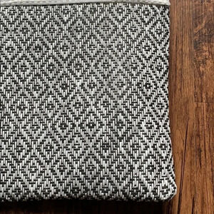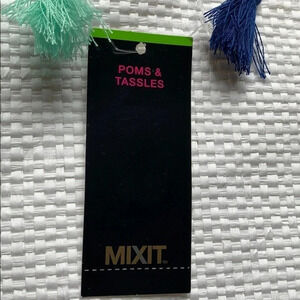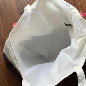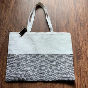 Black White Tassel Pom Pom Trim Woven Tote Bag