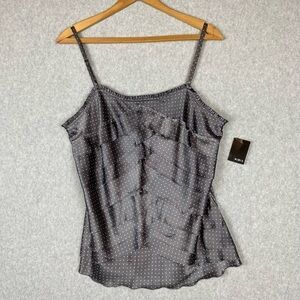 Mixit Women’s Grey with Small White Polka Dots Ruffled Camisole Adjustable Straps Sz XL