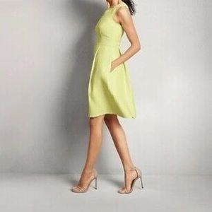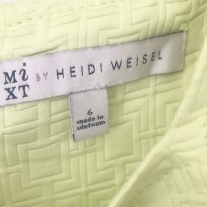 Mixit by Heidi Weisel Lime Green A Line pleated Dress. Back Zipper, side pockets. Nice textured print detail. Size 6