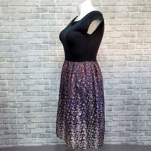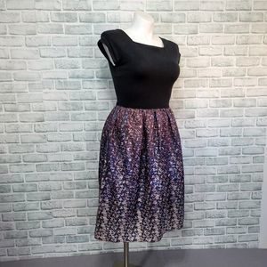 Details: Black Knit Square Neck Top with Tafatta Skirt Fit and Flare Dress, Pockets, *no Belt*