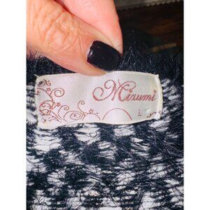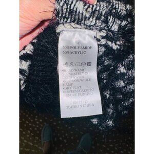Mixumi Black White Herringbone Eyelash Soft Pullover Long Sweater Dress Womens L