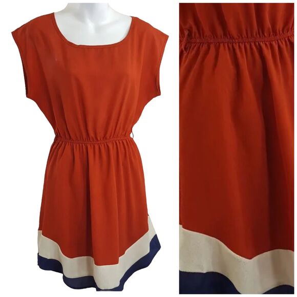 Mixxed 26 Dress Womens Medium Orange Blue Short Sleeve Work Office Sporty