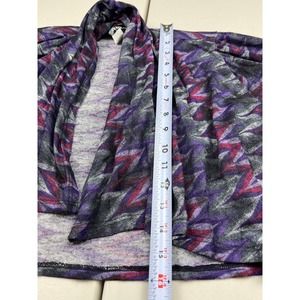 Mixxology LA Women EXTRA LARGE XL Purple Gray Chevron Short Sleeve Drape Cropped Cardigan Shrug Sweater Open Front