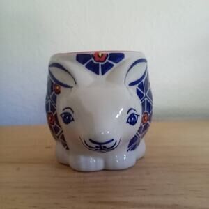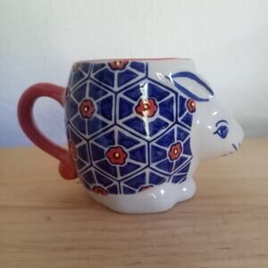 Miyabi Rabbit Mug from Yokohama Studio. Beautiful, ethnic inspired hand crafted bunny mug in blue, off white and red. Brand New with Original Shop Sticker, Never Used. Smoke Free Home. I have a set of 4, selling individually or together.