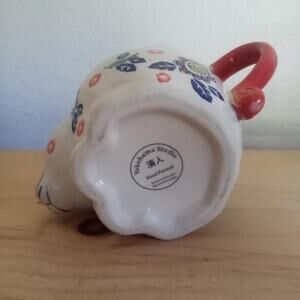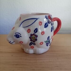 Miyabi Rabbit Mug from Yokohama Studio. Exotic hand crafted bunny and flower mug in blue, off white, yellow, tan and red. Brand New with Original Shop Sticker, Never Used. Smoke Free Home. I have a set of 4, selling individually or together.