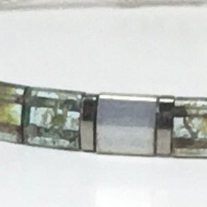 Beautiful Miyuki tila beaded adjustable bracelet. Color green, gray, and chrome accent beads. All bracelets are handmade with high quality Miyuki glass beads.