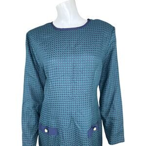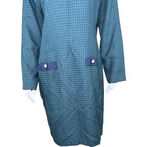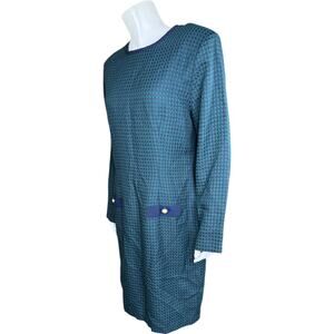 Miz California Green Navy Weave Plaid Vintage Career Dress Womens 12 Midi