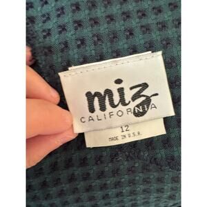 This item is a Miz California dress in a women's size 12. It is a green and navy weave pattern. This item is in excellent used condition. It shows very little to no signs of wear and is free from defects such as holes or stains.
