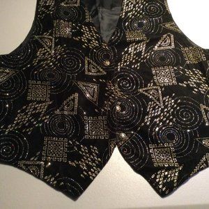Miz California Ladies L Black Foil vest Button Down Geometric Patterns