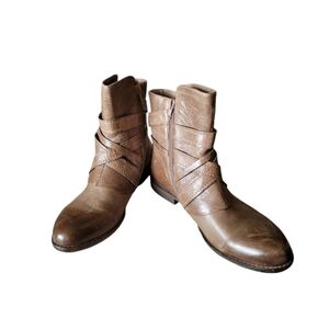 Miz Mooz Ankle Boots Booties Gray Beige Leather Baily Style Size 7.5