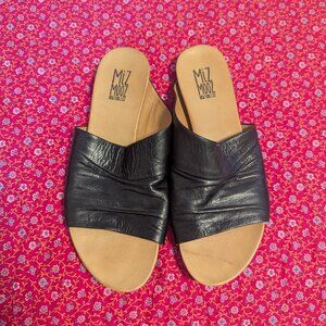Miz Mooz Aria Leather Slides Sandal Black Soft Ruched Minimal Size 10