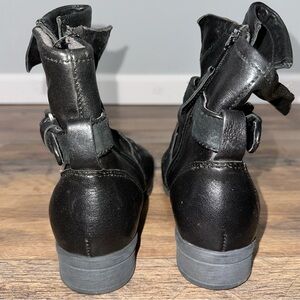 Stylish black ankle boots with buckle detail. Soft leather material. Perfect for casual wear.