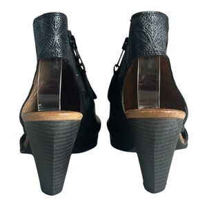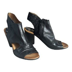 Miz Mooz Black Leather Peep Toe Sandals 38 | Cutout Heel, Zip Closure, NYC Style