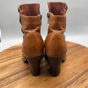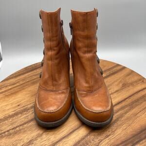 Miz Mooz Boots Womens Size 6.5 Brown Leather Button Zip Booties Heels