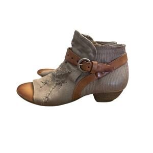 Miz Mooz Caitlin Heeled Sandal Peep Toe Booties Women’s Sz 38 (7.5-8) Leather