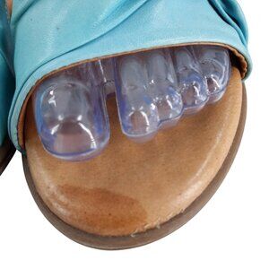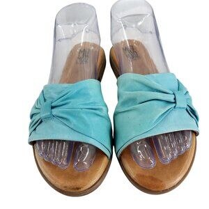 Miz Mooz Daisey Blue Leather Bow Sandals Size 38 Wide US 7.5-8 Slide Ruched