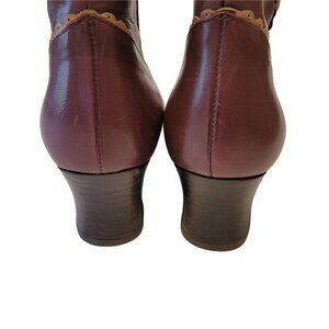 Burgundy / Maroon Leather with Mauve/ Beige Buttons and Scaplloped Trim