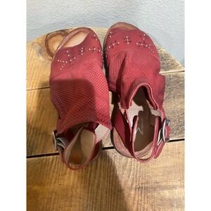 Miz Mooz Fifi Sandals Red Leather Studded Flats Women's Open Toe Buckle Shoes wide size 36 (6)